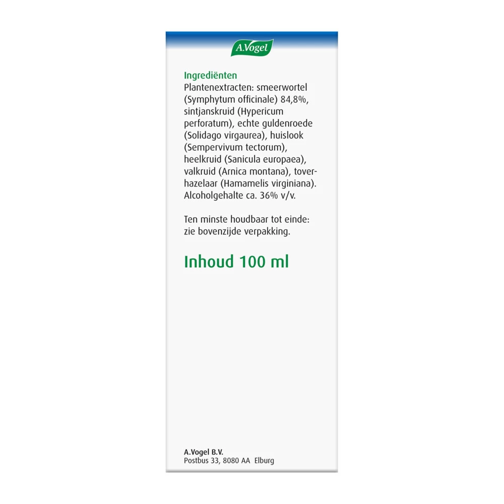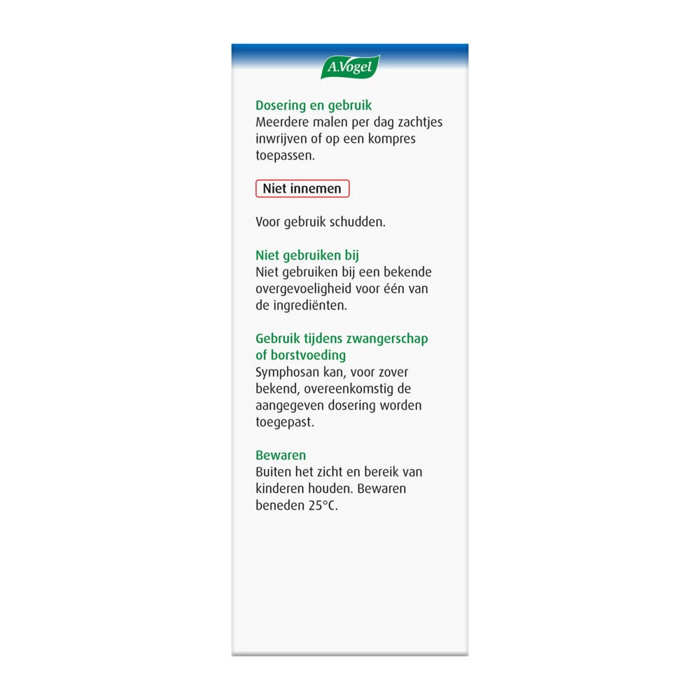 A.Vogel Symphosan Spieren en PezenSymphosan van A.Vogel is voor uitwendig gebruik en verzorgt zwaarbelaste spieren en pezen. De spieren kunnen (zwaar)belast worden door dagelijks werk, sporten of inspanningen die je niet bent geweend om te doen. Naast de verzorging van de spieren heeft Symphosan ook een huidherstellende werking waardoor je Symphosan ook kunt gebruiken bij de verzorging van littekens.De bijzondere eigenschappen van Symphosan op een rij:Ter verzorging van overbelaste pezen en spie