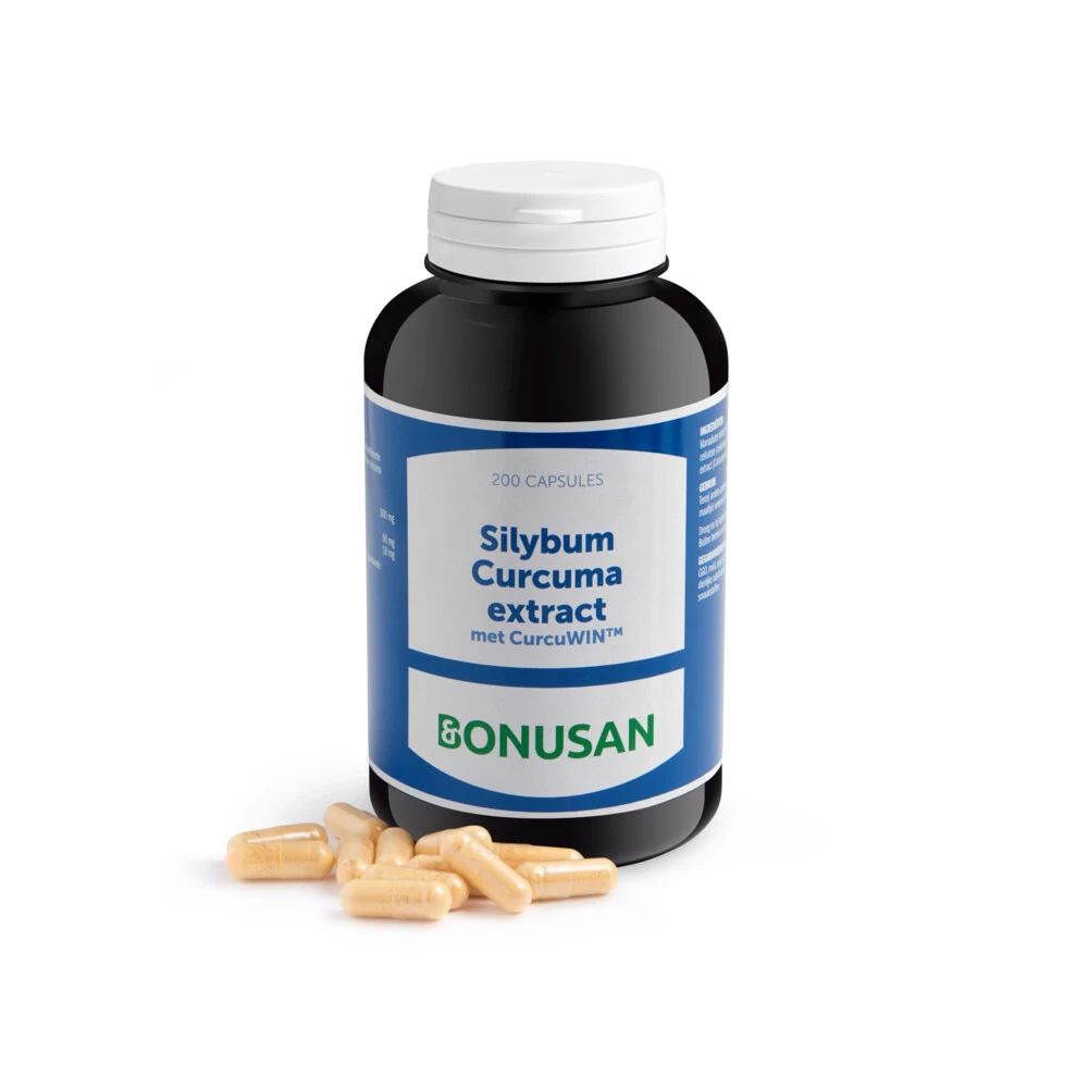 Bonusan Silybum Curcuma ExtractDit product is een kruidenpreparaat.Samenstelling per dagdosering van 2 vegetarische capsulesSilybum marianum semen extract, gestandaardiseerdop minimaal 80% silymarine 300 mgCurcuma longa rhizoma extract (Biocurcumine),gestandaardiseerd op minimaal 80% curcumine 90 mg