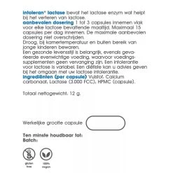 Intoleran Lactase 3000 helpt bij het verteren van lactoseIntoleran Lactase 3000 zijn ideaal voor het verteren van kleinere hoeveelheden lactose uit de voeding of als je minder gevoelig bent voor lactose. De enzymen in Intoleran Lactase 3000 zijn verpakt in een capsules. Dit voedingssupplement bevat het enzym Lactase (3000 FCC), is glutenvrij en 100% vegan. Hierdoor zijn ze geschikt voor vegetariërs en veganisten. Geschikt voor kinderen vanaf 2 jaar. Na inname is het enzym gedurende 30-45 mi