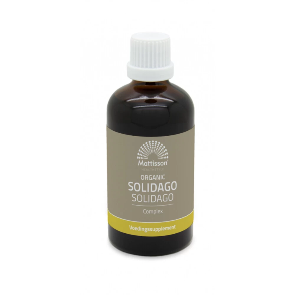 Biologisch Solidago Complex Tinctuur Mattisson Solidago complex tinctuur is een uitgebalanceerde mix van Guldenroede (Solidago virgaurea, herba), Berendruif (Arctostaphylos uva ursi, folium), Berk (Betula pubescens, folium) en Kattensnor (Orhosyphon aristatus, folium).AllergenenvrijMakkelijk te doseren