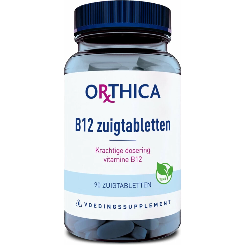 Krachtige dosering vitamine B12Orthica B12 is een krachtige dosering vitamine B12 in een, met natuurlijke zoetstof xylitol, gezoet zuigtablet. Makkelijk in gebruik, juist als je niet zo makkelijk iets inslikt. Gegarandeerd zonder dierlijke ingrediënten. Vitamine B12 helpt om energie uit de voeding vrij te maken. Dit is goed voor het geheugen, concentratievermogen, gemoedstoestand en helpt bij vermoeidheid. Orthica B12 Zuigtabletten is geschikt voor kinderen en volwassenen vanaf 12 jaar.Lekk
