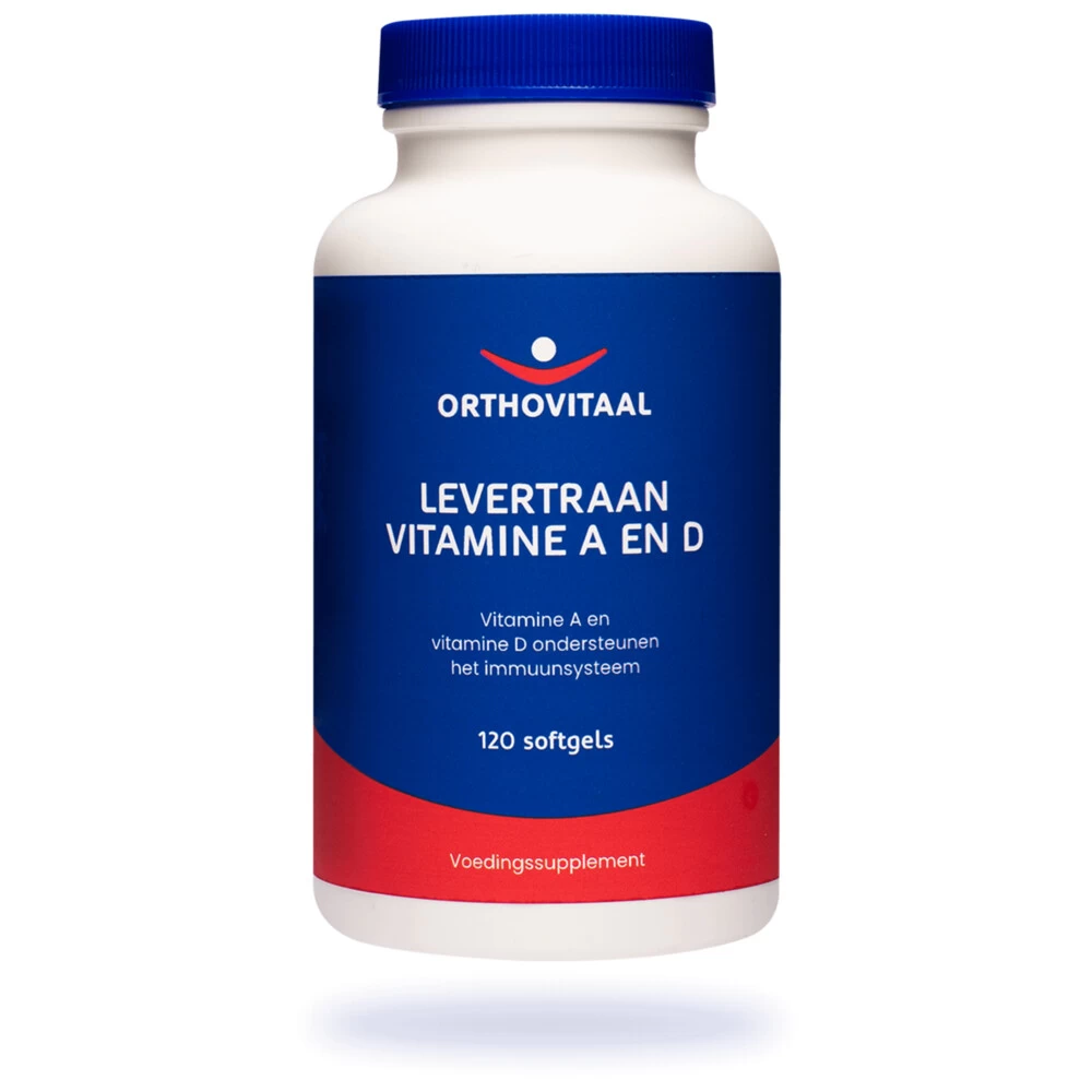 Orthovitaal Levertraan Vitamine A & DOrthovitaal Levertraan Vitamine A & D is een vette olie en bevat onder andere vitamine A en D. Het is tevens een van de producten met omega 3-vetzuren.Met ruime hoeveelheid vitamine A & D, deze ondersteunen het immuunsysteemIn softgel dus smaakbeleving van levertraan is afwezigIdeaal combinatie product met visolie uit kabeljauw en heilbotleverBreed in te zetten product met visolie, vitamine A en D in een goede verhoudingLevertraan bevat van nature