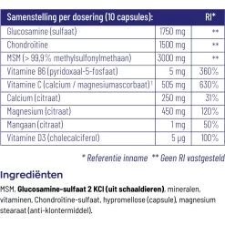 Vitakruid AtrimoveVitakruid Atrimove capsules is een formule voor botten, spieren en gewrichten. Atrimove bevat glucosamine, Chondroïtine-sulfaat, Magnesium, Mangaan, vitamine C, vitamine B6 en vitamine D.Extreem hoge dagdoseringen van de actieve nutriënten: Glucosamine (1750 mg), Chondroïtine (1500 mg) en MSM (3000 mg)Twee ondersteunende nutriënten voor de vorming van bindweefsel en collageen: Mangaan en vitamine CMagnesium: goed voor spieren en skelet, bijgestaan door vitam