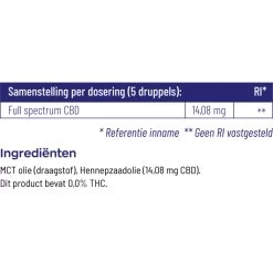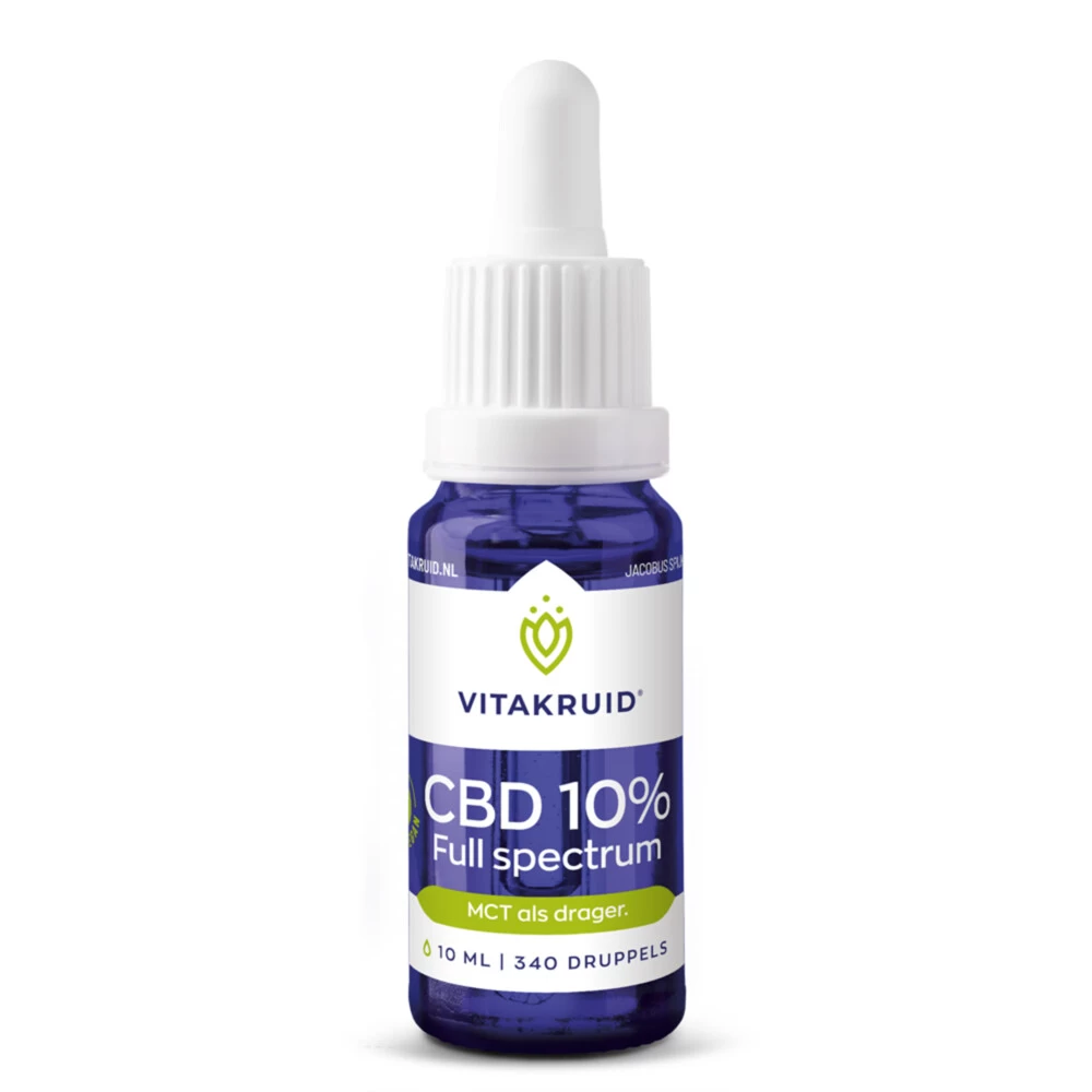 Vitakruid CBD Olie 10% Full SpectrumVitakruid CBD Olie 10% Full Spectrum is 100% natuurlijke en meest rijke vorm van CBD. Deze CBD is een niet psychoactieve cannabinoïde (levert geen stoned of high gevoel op). Gegarandeerd percentage CBD van 10%Gegarandeerd 0.0% THCDuurzame MCT olie bevordert een snelle afgifte van cannabinoïdenOntwikkeld in Nederland en getest in Nederlandse onafhankelijke laboratoriaHerkomst van zaadje tot tinctuur bekendMCT als drager zorgt voor goede smaak&nbs