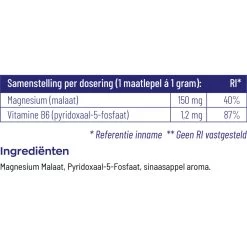 Vitakruid Magnesium MalaatVitakruid Magnesium Malaat is een supplement met organisch (natuurlijk) gebonden magnesium, namelijk magnesiummalaat in combinatie met P-5-P (actieve vorm van vitamine B6). Deze vorm van magnesium wordt beter opgenomen dan anorganische (u0027dodeu0027) magnesiumvormen, zoals magnesiumsulfaat. Magnesiummalaat is een verbinding van magnesium en appelzuur. Deze vorm helpt om te ontspannen en levert de spiercellen energie. Appelzuur is een belangrijke stof in de citroenzu