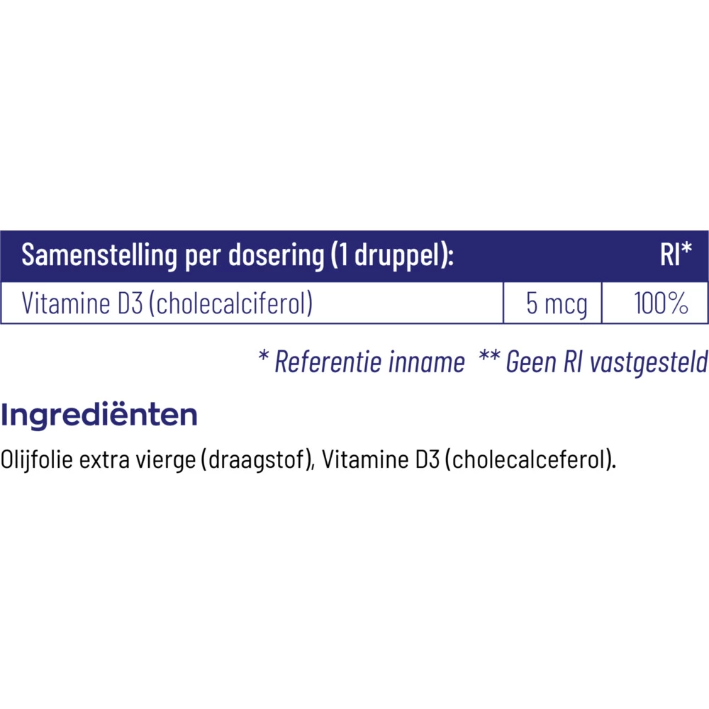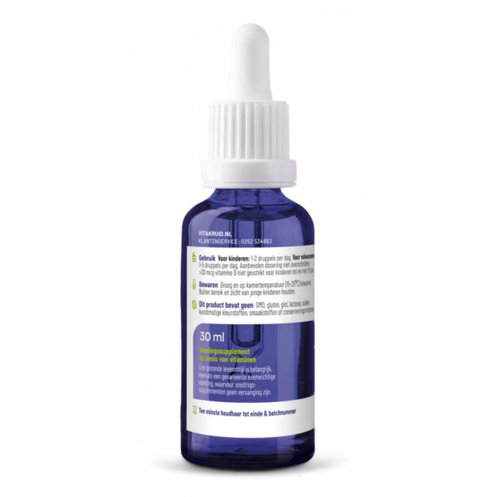 Vitamine D3 DruppelsVitamine D3 druppels van Vitakruid zijn gemakkelijk te doseren waardoor deze vitamine geschikt is voor het hele gezin. Met het toegevoegde pipet bepaal je zelf de hoeveelheid vitamine D3 die nodig zijn. Hierdoor kan je in ieders vitamine D behoefte voorzien.Vitamine D druppels voor ultiem doseergemakGeschikt voor het complete gezin, het hele jaarIn extra vierge olijfolieGlutenvrij en lactosevrijVegetarisch